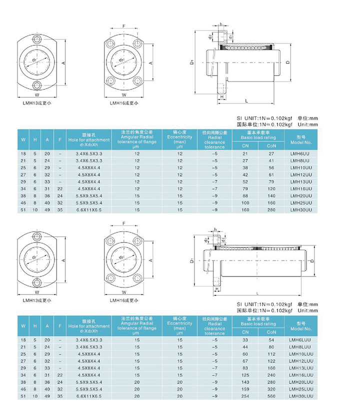 法蘭直線軸承系列LMH...UU