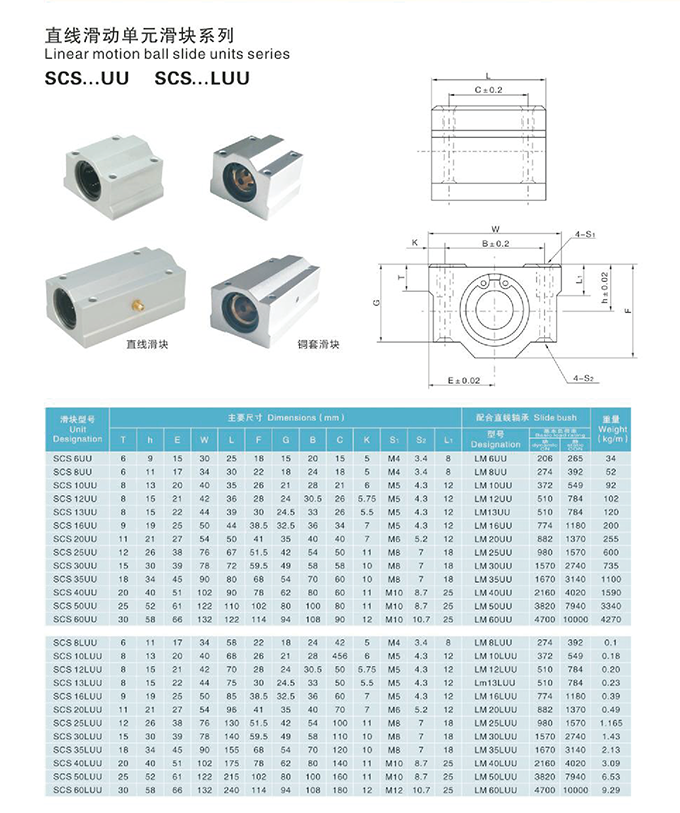 直線滑動(dòng)單元滑塊系列SCS...UU SCS...LUU